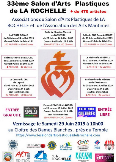 33ème Salon d'Arts Plastiques de La Rochelle La Rochelle, du 29 juin au 24 juillet 2019Porte Royale |