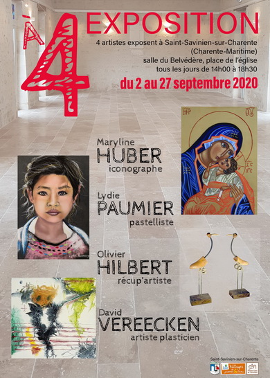 À 4 - Exposition avec Maryline Huber, Lydie Paumier, David Vereecken, Olivier Hilbert Saint Savinien, du 2 au 27 septembre 2020 |