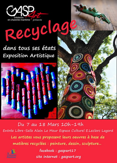 Recyclage dans tous ses états les Artistes Gaspart La Rochelle - Lagord, du 07 au 18 mars 2022Salle Le Meur, Espace culturel E.Leclerc |