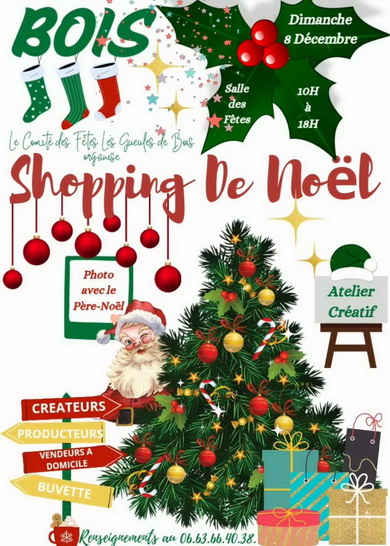 Shopping de Noël Bois (par St Genis de Saintonge), le 8 décembre 2024Salle des Fêtes |
